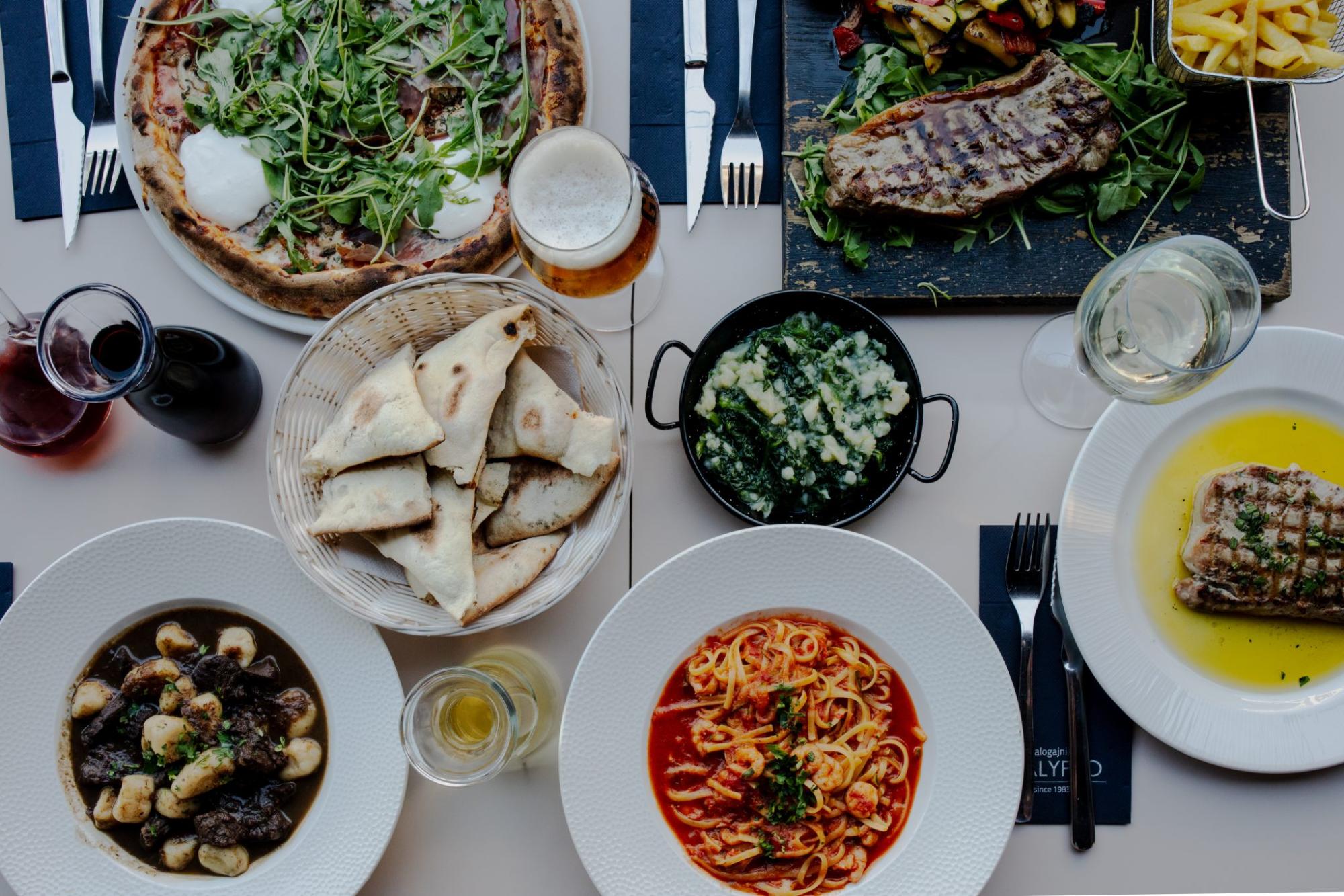 Ponuda se temelji na raznim vrstama pizza prema originalnoj recepturi, uz bogat izbor tjestenina, ručno rađenih njoka, poznatih rižota te svakodnevnih tradicionalnih jela. Mesni i riblji specijaliteti s roštilja pripremaju se od najkvalitetnijih domaćih sastojaka, uključujući i vrhunske odležane steakove. Cilj restorana je pružiti svakom gostu osjećaj doma uz kvalitetnu hranu, pića i ugodnu, domaću atmosferu.